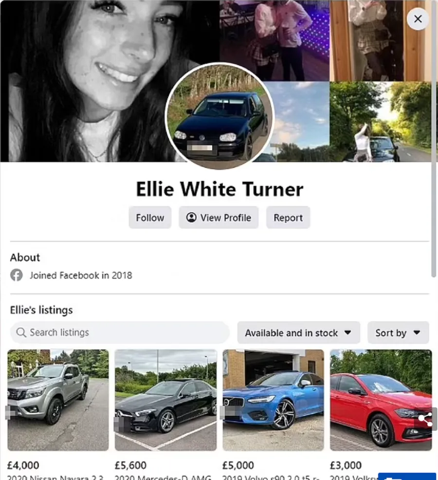 Ellie White Turner s-a trezit în situația de a remedia singură problema. De pe contul tinerei de Facebook, hackerii publicau anunțuri false despre mașini de vânzare, în acest mod folosindu-se de profilul fetei pentru a obține mii de lire sterline de la presupusele victime. Escrocii se ofereau să livreze mașinile, însă doar înainte de achitarea unui avans, dar și cu promisiunea de returnare a banilor. Când victimele trimiteau banii de avans, hackerii dispăreau pur și simplu cu banii.