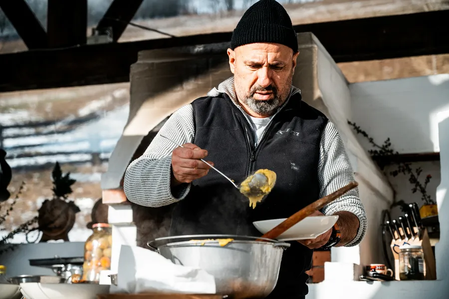 Cătălin Scărlătesu la filmările emisiunii „Pe drumul gustului”