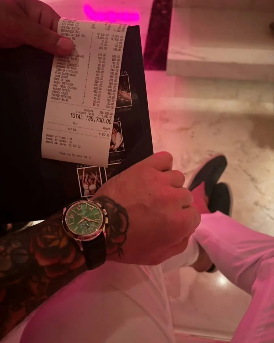 Dar sportivul a primit o reducere serioasă din partea restaurantului, de 136.000 de euro, lăsându-l cu o factura totală de 162.000 de euro.