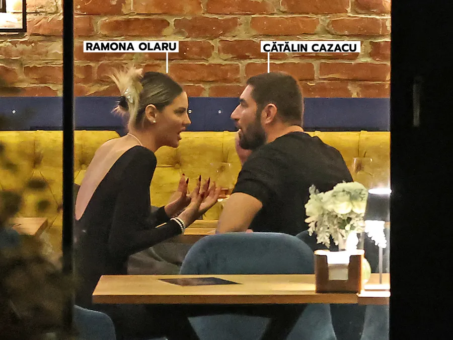 Ramona și Cătălin aveau să rămână țintuiți în scaune, la masă. Ceva s-a întâmplat… Ea devine țâfnoasă și cam repezită. Îi cere explicații lui, fostului exatlonist. El e calm. Parcă mult prea calm. Încearcă să-i explice și s-o înduplece. Ba chiar zâmbește, pe alocuri. Ea, nu și nu! Gesticulează și vrea, musai, un anume răspuns. Cel puțin, asta s-ar înțelege după imaginile pe care CANCAN.RO le-a surprins. Cazacu încearcă să-și împace iubita, să-i ofere ceea ce vrea să audă. Discuția se lungește.