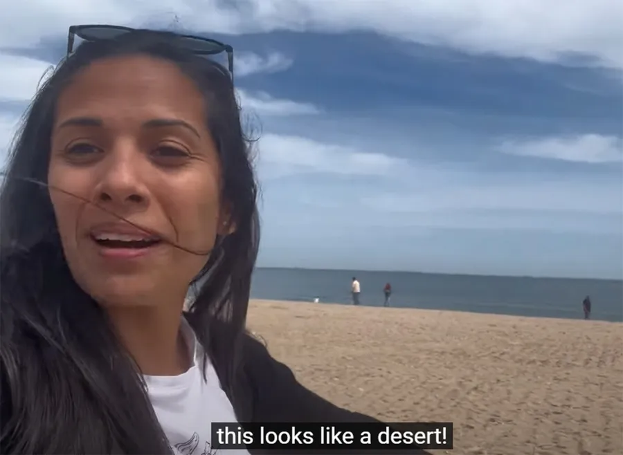 Însă, cum a pus piciorul pe nisip, femeia a rămas cu gura căscată. Aceasta a fost impresionată de mărimea plajei. Argentinianca a mărturisit că nu a mai văzut niciodată o asemenea plajă, comparând întinderea de nisip cu un deșert.