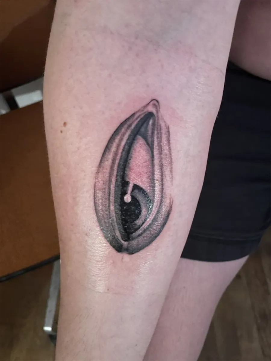 Tatuajul tânărului ilustrează un ochi ușor obosit, care privește într-o parte, însă toți internauții s-au pus de acord că la prima vedere acesta trimite cu gândul la organul de reproducere feminin.