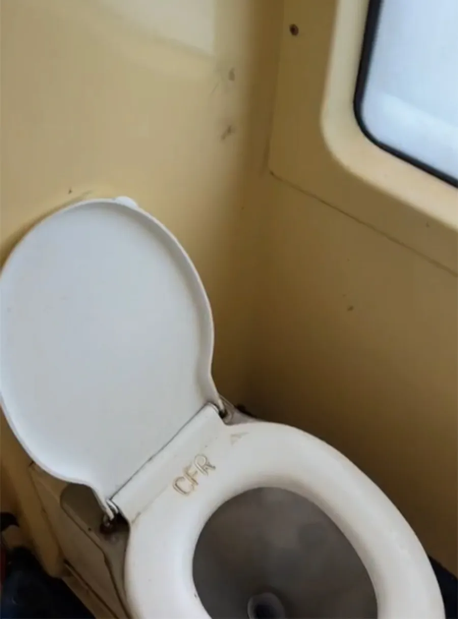 După ce s-a plimbat prin compartimentele trenului, britanicul a vrut să vadă și cum arată băile. Turistul a precizat că toaleta nu arată foarte bine. Mai mult decât atât, el a fost dezamăgit că nu găsit un magazin de unde să își poată lua ceva de mâncare.