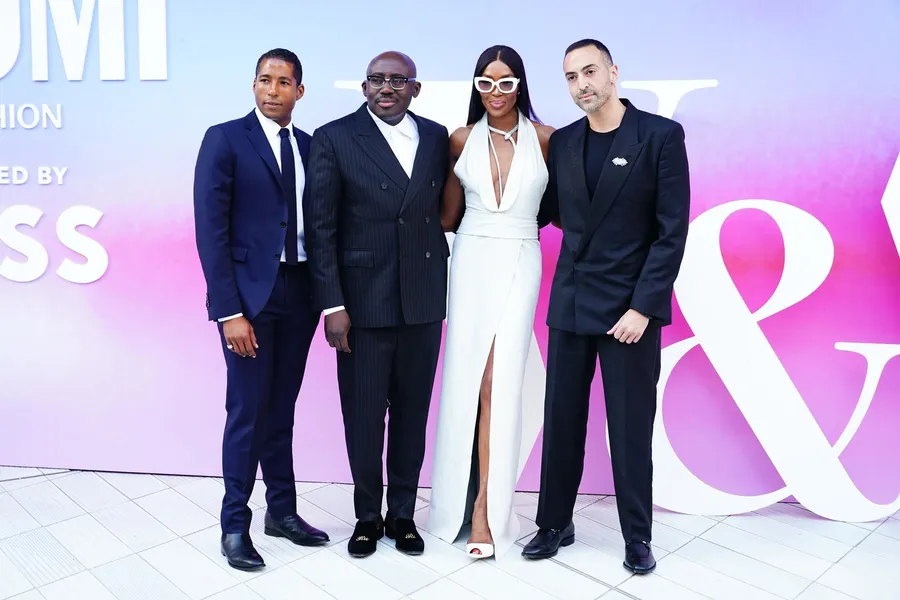 Hassan Pierre, Edward Enninful, Naomi Campbell și Mohammed Al Turki (ultimul din dreapta) sosind la V&A Summer Party care sărbătorește expoziția NAOMI: In Fashion, la Muzeul Victoria and Albert din Londra. Foto: Profimedia