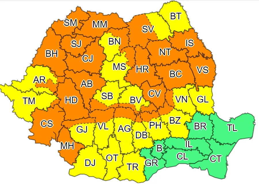 Sfârșitul de săptămână aduce o vreme extremă în mare parte din țară. Meteorologii au emis noi avertizări și sunt așteptate atât averse torențiale și vijelii, cât și caniculă. Aproape întreaga țară stă sub semnul fenomenelor meteo extreme, iar vremea devine din ce în ce mai capricioasă. Este în vigoare un cod portocaliu de ploi torențiale, un cod galben de instabilitate atmosferică și o avertizare de caniculă. Ce zone sunt afectate?