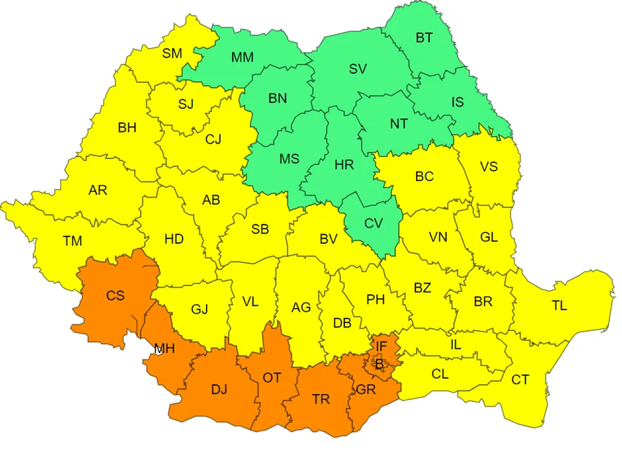 Administrația Națională de Meteorologie a emis o avertizare de tip cod portocaliu de caniculă și disconfort termic accentuat. Avertizarea este valabilă pentru ziua de 2 august și vizează județele Caraș-Severin, Mehedinți, Dolj, Olt, Teleorman, Giurgiu, Ilfov și municipiul București. De asemenea, valul de caniculă se extinde și pentru ziua de 3 august și va cuprinde alte județe.