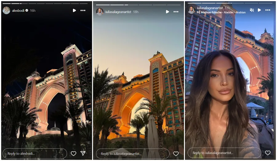 Internetul a fost pus pe jar din nou, după ce afaceristul și fosta lui soție s-au pozat în același loc. El a postat o fotografie din fața celebrului hotel Atlantis Dubai, urmat de Iulia Sălăgean care a pus și ea niște imagini din același loc, la o diferență de o oră, maxim două. Ei bine, când fotografiile lor au fost urcate pe Instagram, cei care-i urmăresc s-au întrebat dacă nu cumva și-au dat întâlnire. Sigur că, și dacă s-ar fi văzut ar fi fost un lucru absolut normal, ținând cont că au o fetiță împreună, iar Alex Bodi este topit după micuța Selena.
