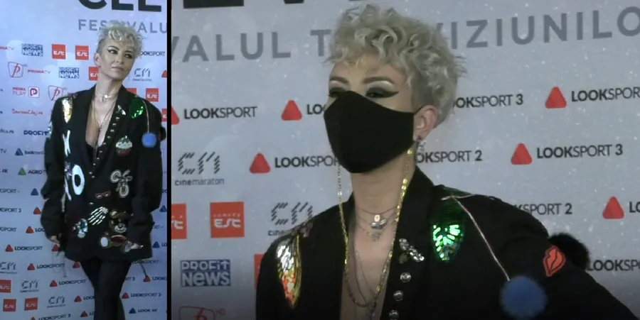 Atenția tuturor a fost atrasă și de accesoriul neașteptat pe care cântăreața a ales să îl poarte la panoul foto: masca de protecție! Solista a optat pentru un machiaj monocromatic, negru, asortat la întreaga ținută, cu ajutorul căruia și-a scos în evidență privirea. Părul a fost coafat în stilul punk-rock, iar accesoriile au fost alese cu mare atenție.
