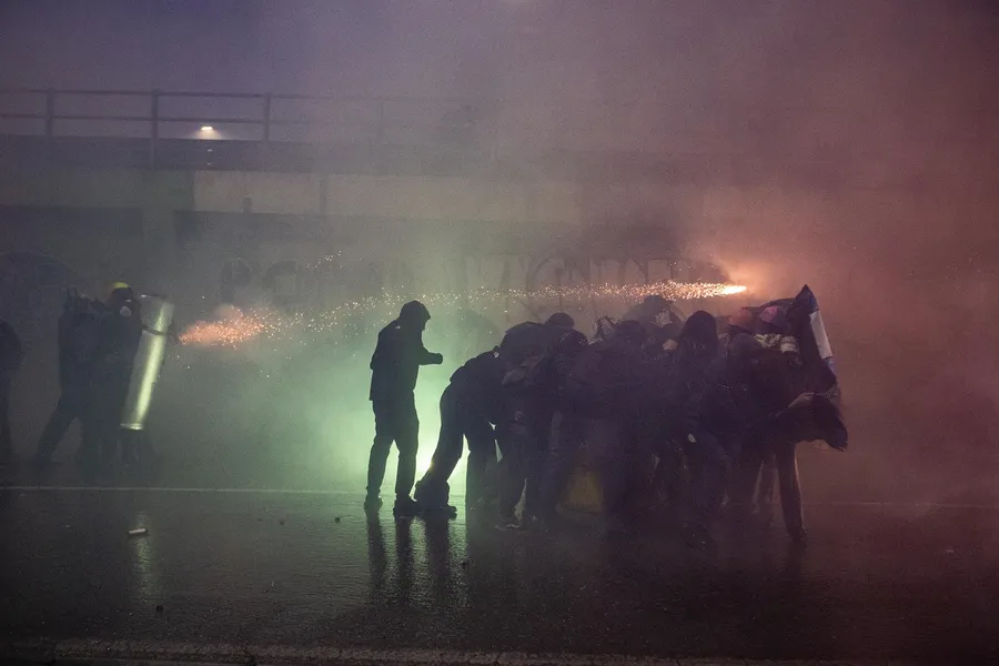 O parte dintre protestatari au aruncat obiecte spre polițiști, iar autoritățile au intervenit cu mijloace de dispersare, inclusiv apă sub presiune și gaze iritante. În urma incidentelor, mai mulți participanți au fost reținuți.