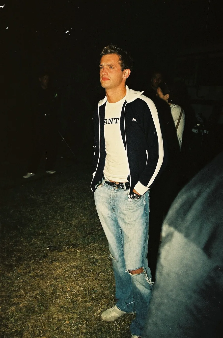Sorin stă concentrat, cu mâinile în buzunar. Outfitul? Adidași comozi, blugi rupți strategic în genunchi, tricou Gant (respectabil), bluză de trening Puma (sportiv). Și apoi cureaua. Împletită, nene. Fină, lucrată, aproape de city break italian, dar total pe lângă restul lookului. A încurcat pantalonii cu geaca. De fapt, doar cureaua. Jos cu ea! Bani de bilet nu aveau pe vremuri, dar chiar nu s-a găsit o curea potrivită?