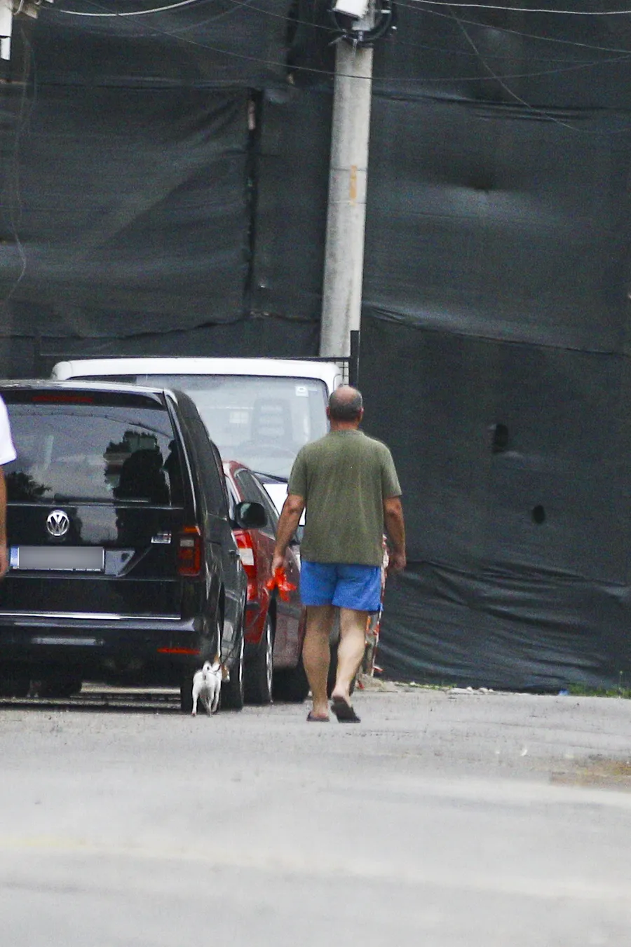 Îmbrăcat lejer – în șlapi, tricou și pantaloni scurți – simpaticul actor, care și-a câștigat notorietatea în vestitul serial ”La Bloc”, pare că a devenit ”bonă” pentru câinele „de buzunar”. Cu căștile în urechi, dar foarte atent la nevoile patrupedului, Americanu’ s-a plimbat zeci de minute pe străzile din apropierea casei.