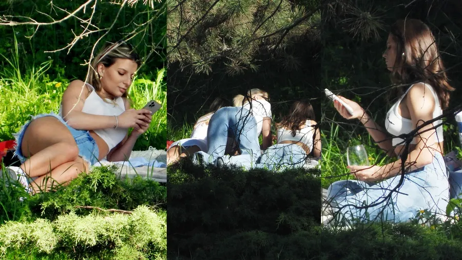 Încărcate cu gustări și licori corespunzătoare, între care și o sticlă de vin fin, Ana, Raluka și Cristiana au găsit un loc ferit în parc și s-au întins pe iarbă. Ocazie cu care CANCAN.RO le-a întâlnit în ipostaze interzise minorilor. În timp ce discutau, cele două artiste, în special, au făcut spectacol cu formele cu care le-a înzestrat natura. (VEZI ȘI: RALUKA ȘI ANA BANICIU, IPOSTAZE INCENDIARE LA MUNTE)