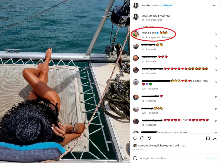 Misha nu a putut să nu admire forma de zile mari în care se află Anca Țurcașiu, iar printre multitudinea de complimente a strecurat și ea un comentariu apreciativ. Mai exact, în secțiunea de comentarii, Misha a lăsat mai multe emoji-uri cu flăcări, semn al admirației și aprecierii. Artista a fost impresionată la rândul ei de silueta Ancăi Țurcașiu și nu a ezitat să își exprime aprecierea.