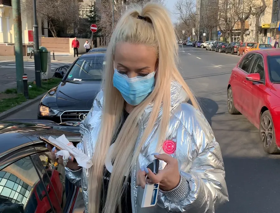 De data aceasta, Anda Adam nu și-a mai asortat ținuta cu mașina, dar, în schimb, s-a echipat ca la carte. Cu masca de protecție pe față și cu dezinfectantul la purtător.