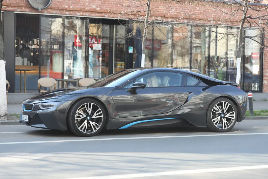 Anda Adam conduce un super-bolid de lux, un BMW i8
