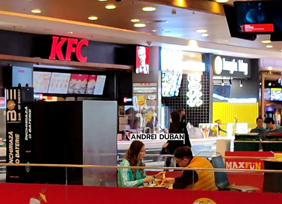 Ajung în fața vitrinei și verifică meniul. Sunt norocoși, nu e nimeni în fața lor! Se hotărăsc, comandă și… așteaptă. Câteva minute! Nu multe! Oricum, preparatele de tip fast-food merită, adesea, așteptarea! Comanda e gata! Andrei Duban „înșfacă” tava și se îndreaptă către zona de mese. Grațiela îl urmează, cu grație ?.