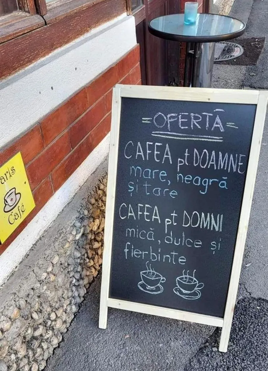 Anunțul viral postat de proprietarul unei cafenele din România, la intrare: „Cafea pentru doamne: mare, neagră și..”
