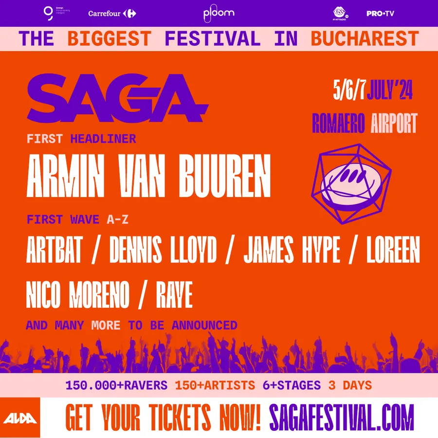 SAGA Festival, cel mai mare festival de muzică din București, anunță primii artiști pentru ediția din 2024, cu DJ-ul și producătorul olandez Armin van Buuren în fruntea listei. Din acest prim anunț mai fac parte și RAYE, cântăreața și compozitoarea din Londra cunoscută pentru melodii precum „You Don’t Know Me” și „By Your Side”, care va concerta pentru prima dată în România.