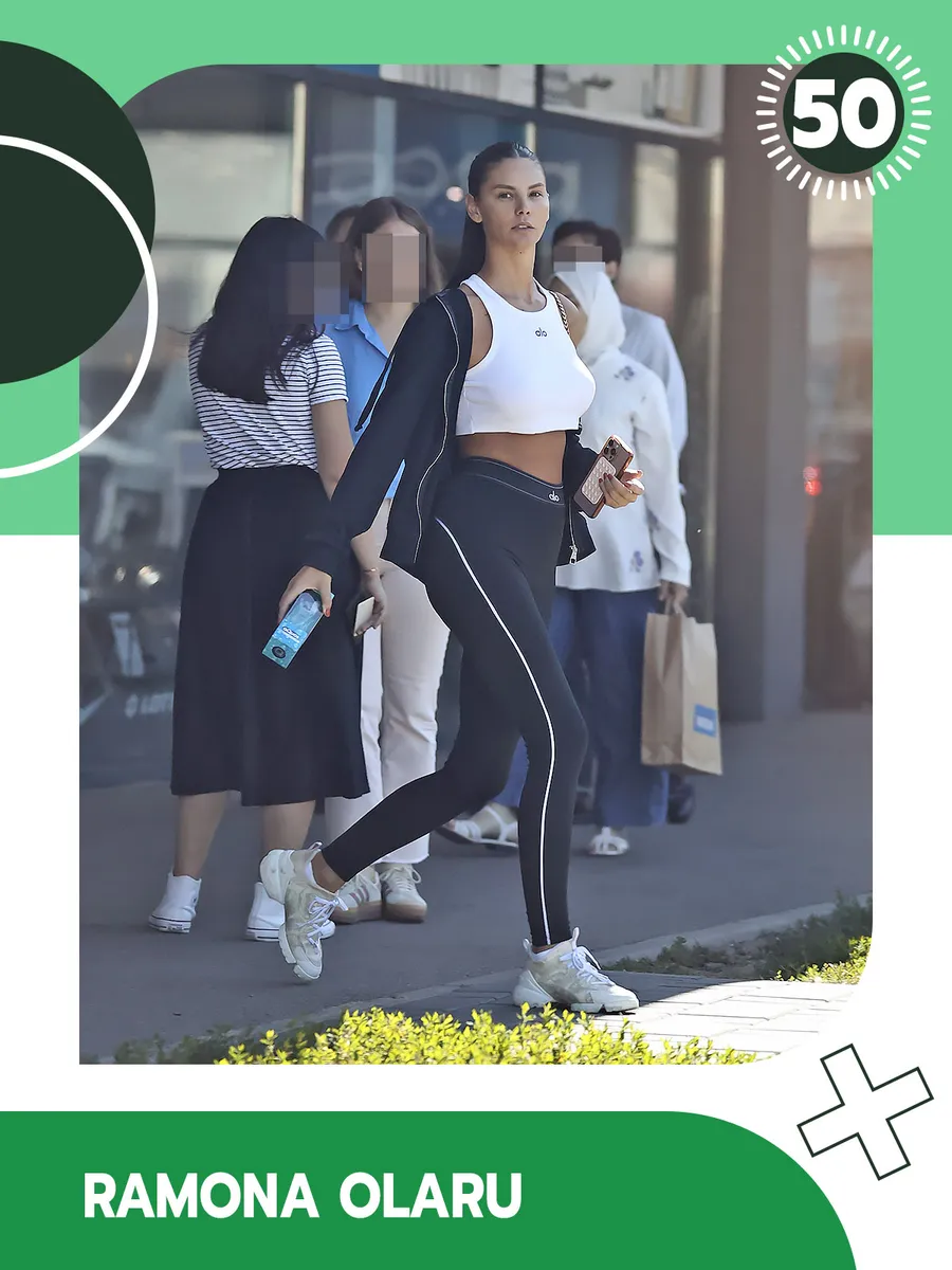Ramona Olaru ne încântă și de data aceasta privirile cu apariția ei. A purtat o pereche de colanți modelatori negri cu un detaliu alb și o bustieră albă super scurtă, care îi lăsa abdomenul la vedere. O încântare pentru privirile trecătorilor!