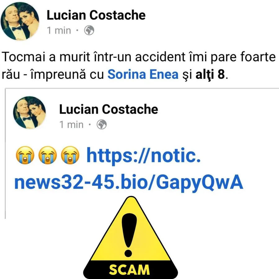 „Un astfel de caz a fost prezentat săptămâna trecută de către CyberM.ro: atacatorii se foloseau de conturi compromise pentru a lansa mesaje false cu un caracter tragic, în care anunţau moartea anumitor persoane în urma unor accidente.