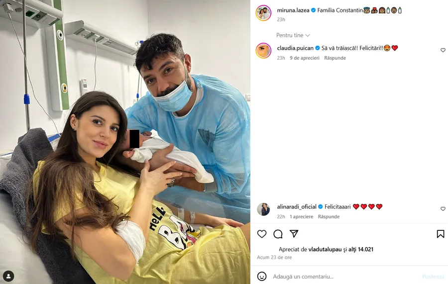 Printre cei care au dat like postării se numără și Vlăduța Lupău. Mai mult decât atât, Claudia Puican i-a transmis „Să vă trăiască! Felicitări”, iar Alina Radi a ținut să lase și ea un comentariu „Felicitări”.