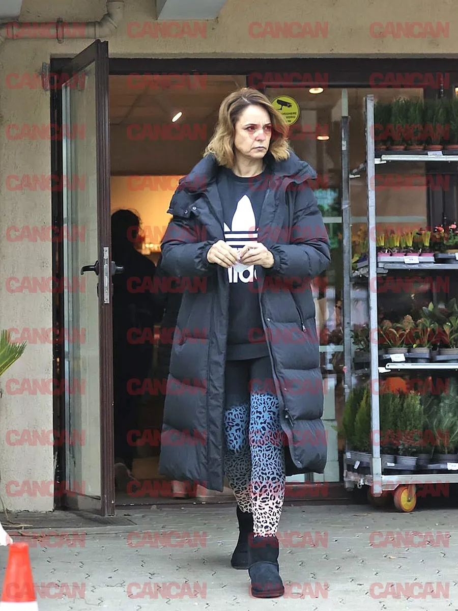 Și-a pus pe ea o pereche de colanți animal-print, în trei culori, un hanorac larg, în picioare și-a tras UGG-uri și în partea de sus o geacă de fâș, rapid, și a zbughit-o! Spuneam mai sus că iubitul său nu i-a fost alături, însă Andreea Marin a vorbit o vreme la telefon. S-o fi consultat cu el în privința alegerii florilor, cine știe?!
