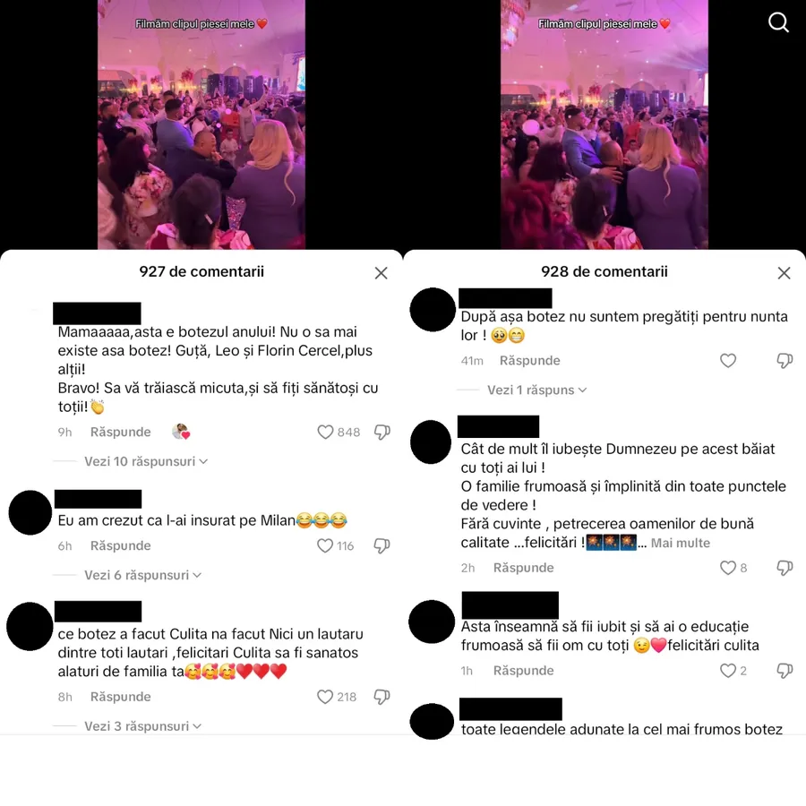 „Mamăăăăă, ăsta e botezul anului. Nu o să mai existe așa botez! Guță, Leo și Florin Cercel plus alții! Bravo! Să vă trăiască micuța și să fiți sănătoși cu toții!”/ „Eu am crezut că l-au însurat pe Milan”/ „Ce botez a făcut Culiță, nu a făcut niciun lăutar. Felicitări, Culiță!”/ „După așa botez, nu suntem pregătiți pentru nunta lor”/ „Toate legendele adunate la cel mai frumos botez”, au fost câteva dintre comentariile internauților pe TikTok.