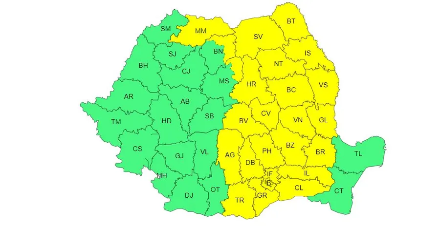 ANM: cod galben emis pentru 12 ore în 25 de județe