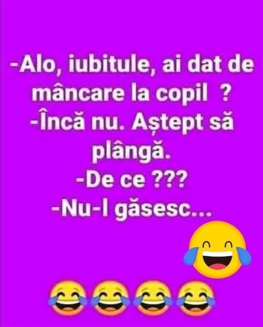 Dragă cititorule, CANCAN.RO ţi-a pregătit astăzi un banc savuros, care cu siguranţă îţi va aduce zămbetul pe buze. Ia-ţi porţia de râs alături de noi, în rândurile de mai jos.
