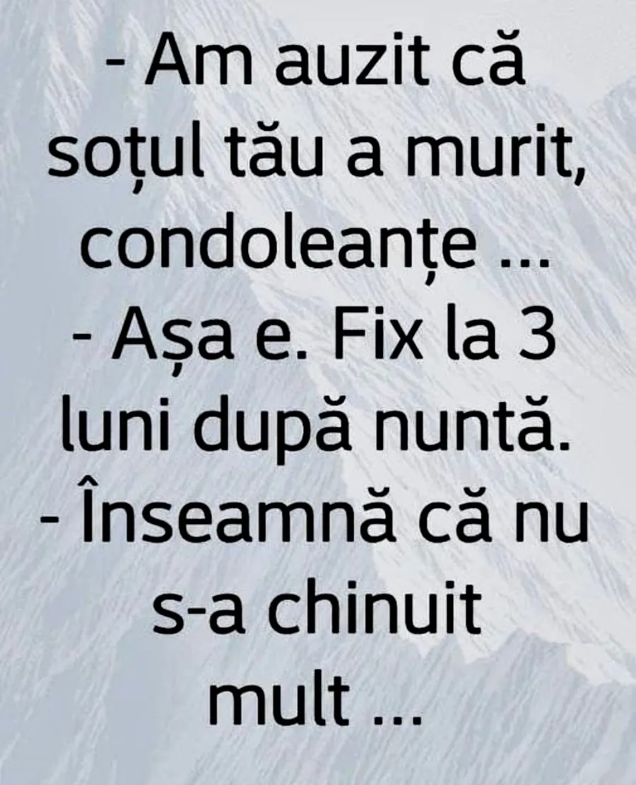 BANC | ”Am auzit că soțul tău a murit. Condoleanțe!”