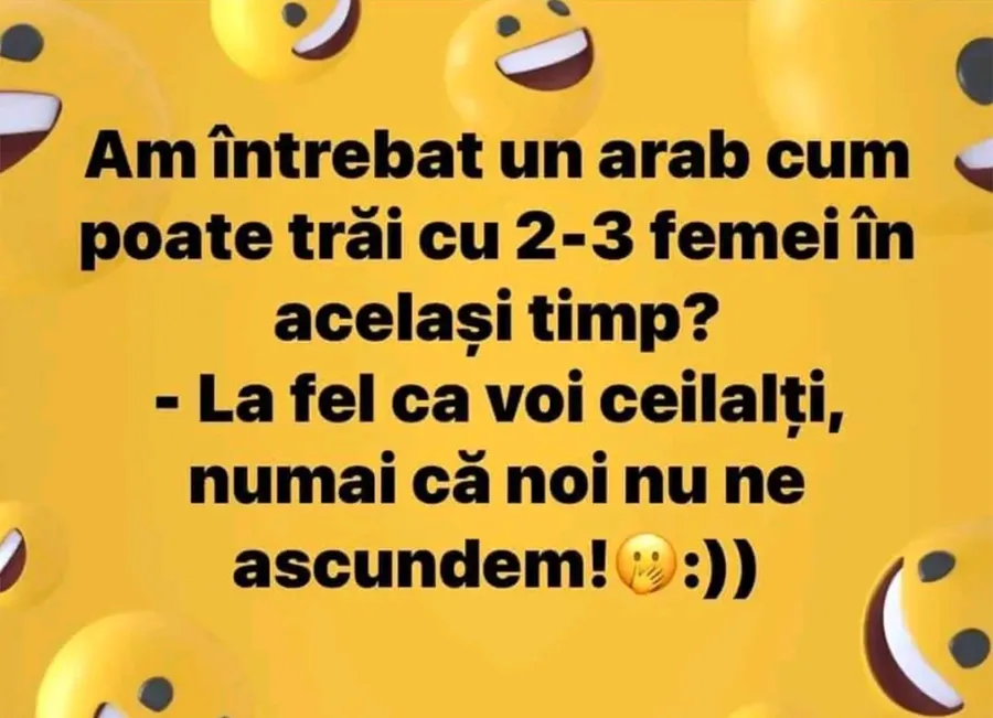 Dragi cititori, încheiați ziua cu voie bună! CANCAN.ro v-a pregătit o glumă savuroasă, care garantat vă va face să râdeți cu lacrimi. Protagonistul bancului de astăzi este un arab.