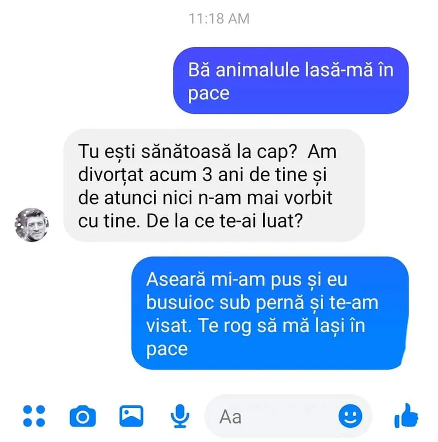 Tu ești sănătoasă la cap? Am divorțat acum trei ani de tine și de atunci n-am mai vorbit cu tine. De la ce te-ai luat?