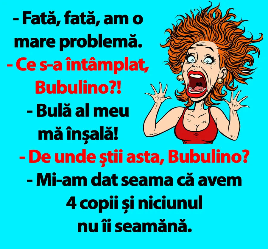 – Mi-am dat seama că avem 4 copii și niciunul nu îi seamănă.
