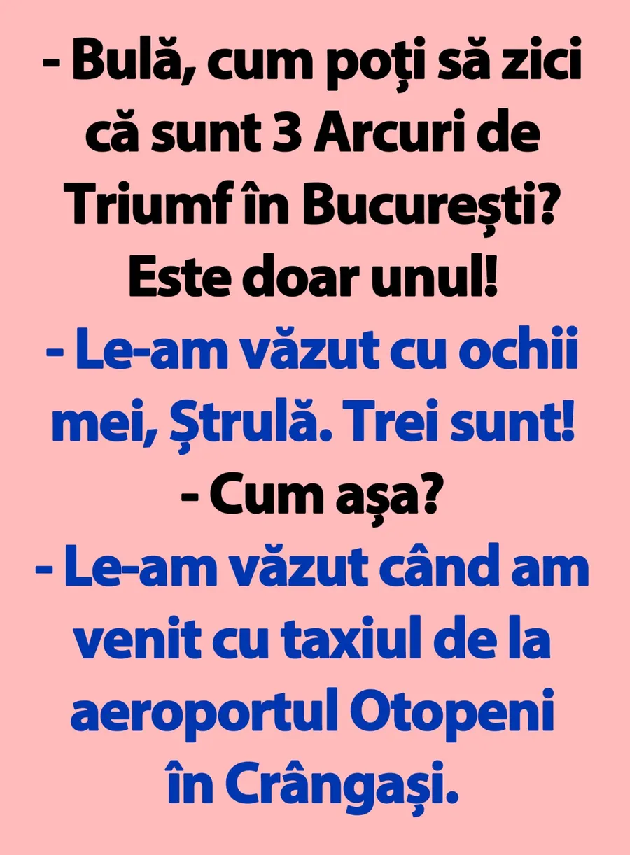 – Bulă, cum poți să zici că sunt 3 Arcuri de Triumf în București? Este doar unul!