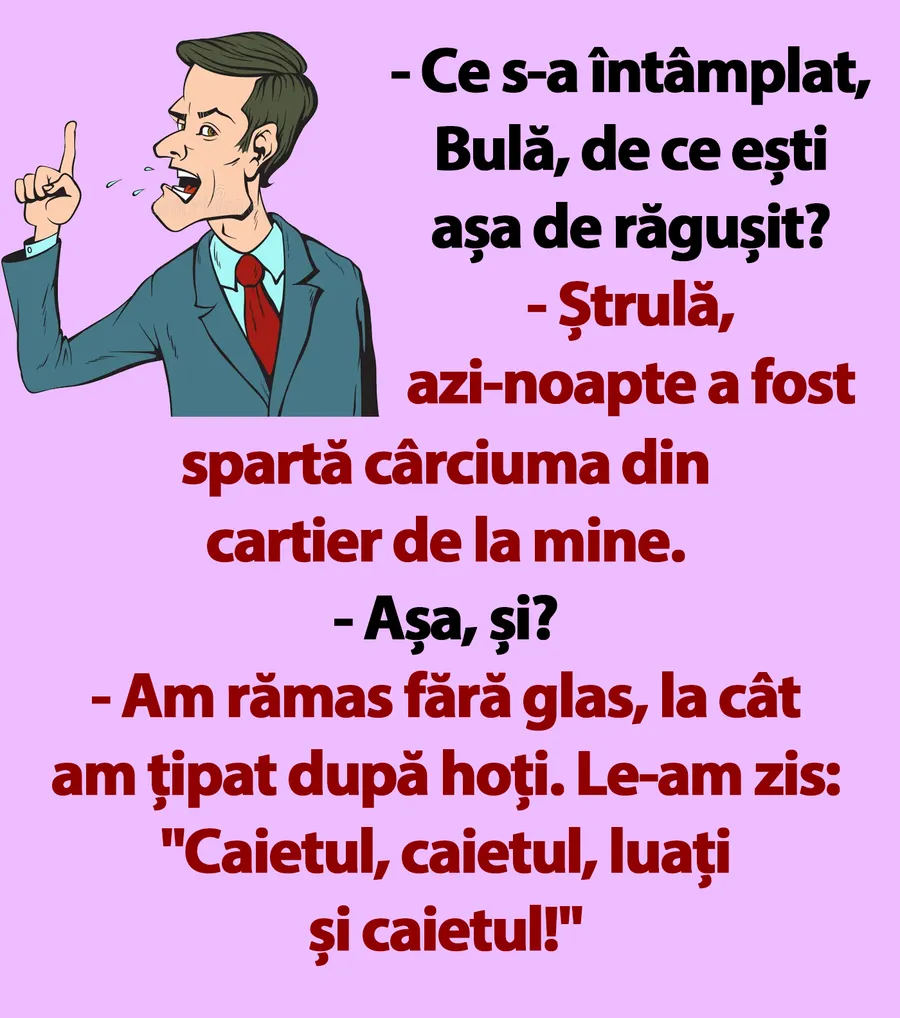 „- Ce s-a întâmplat, Bulă, de ce ești așa de răgușit?