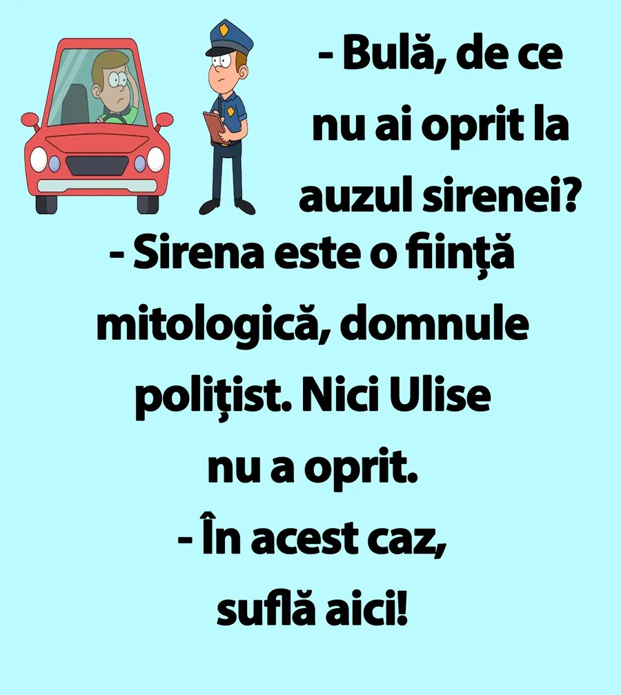 Dragă cititorule, CANCAN.RO ți-a pregătit un banc de nota 10. Bulă este oprit în trafic de către un polițist și întrebat de ce nu a oprit la semnalul de avertizare.