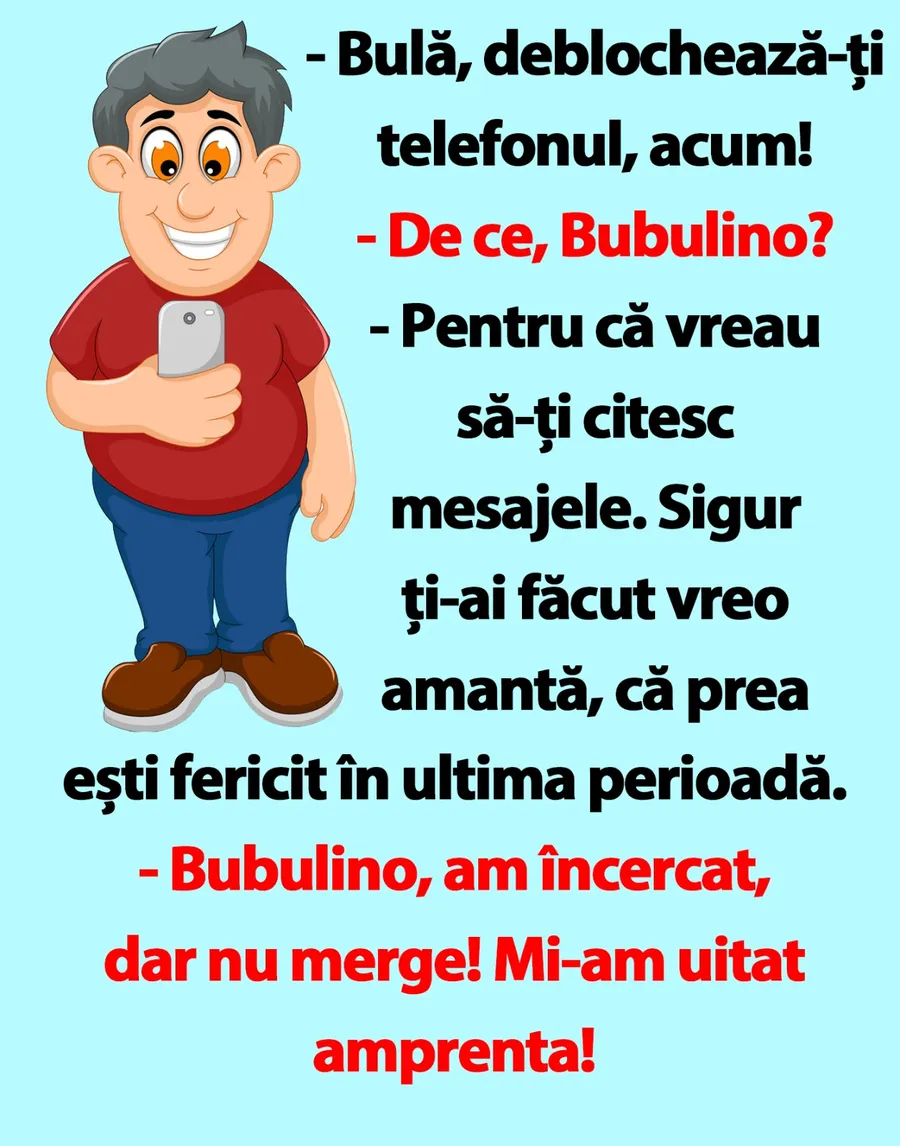 – Pentru că vreau să-ți citesc mesajele. Sigur ți-ai făcut vreo amantă, că prea ești fericit în ultima perioadă.