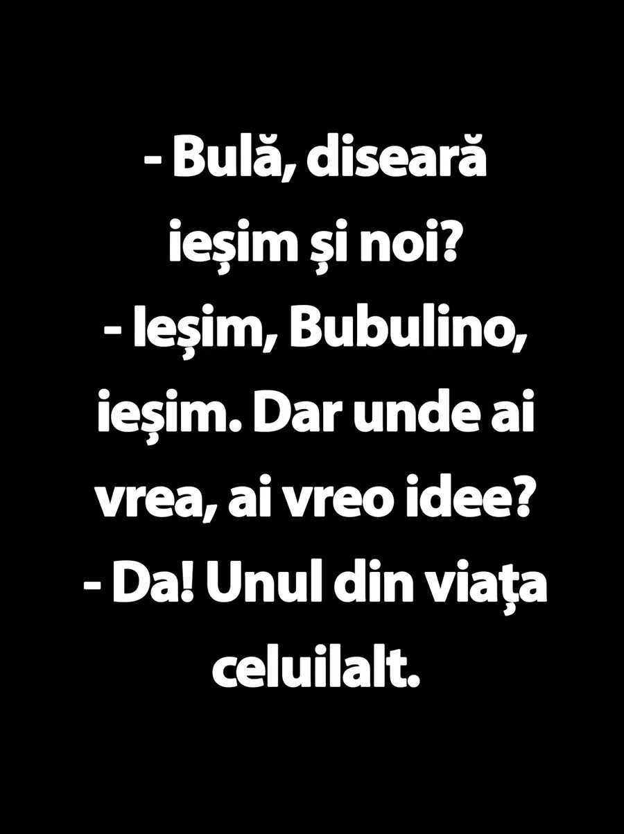 – Bulă, diseară ieșim și noi?