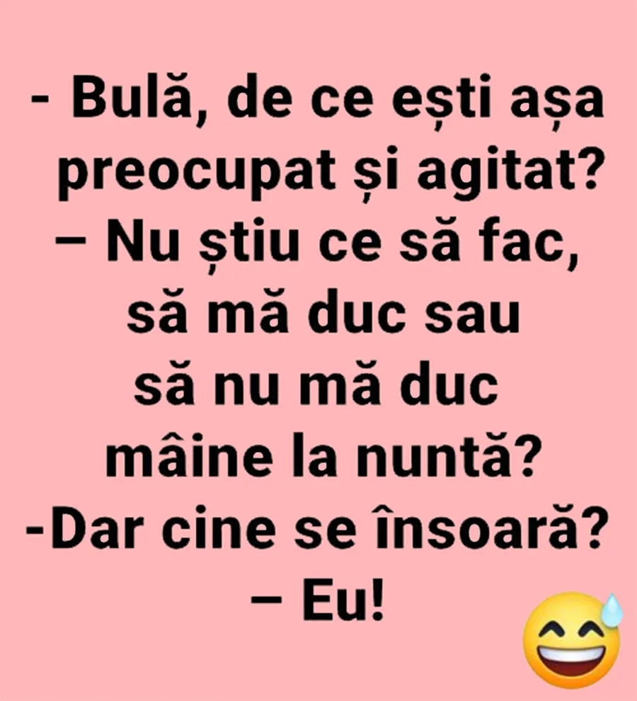 -Nu știu ce să fac, să mă duc sau să nu mă duc mâine la nuntă?