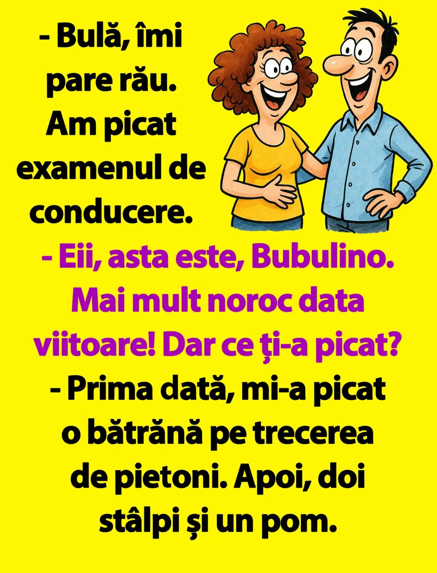 – Bulă, îmi pare rău. Am picat examenul de conducere.