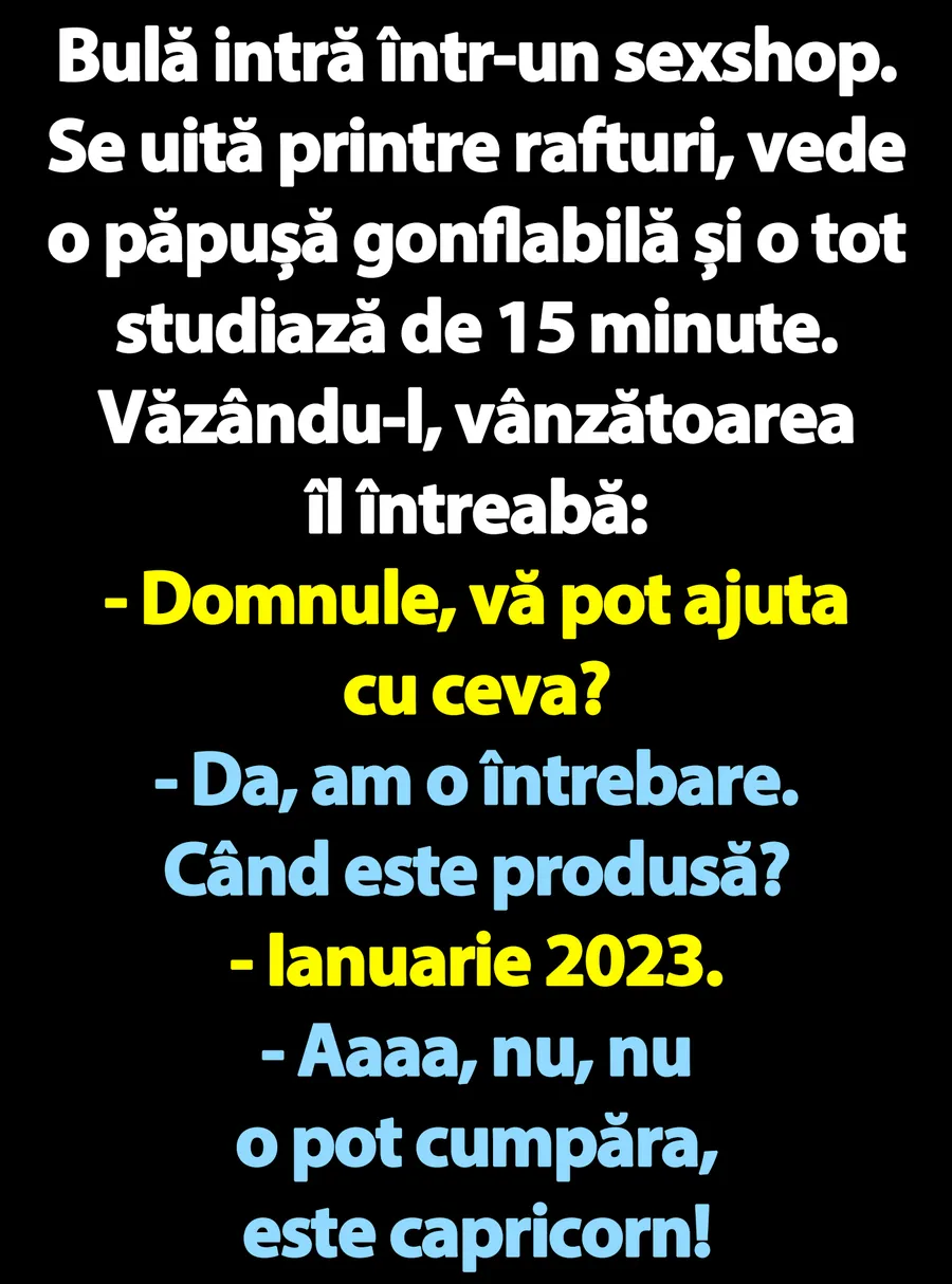 – Aaaa, nu, nu o pot cumpăra, e capricorn!”.
