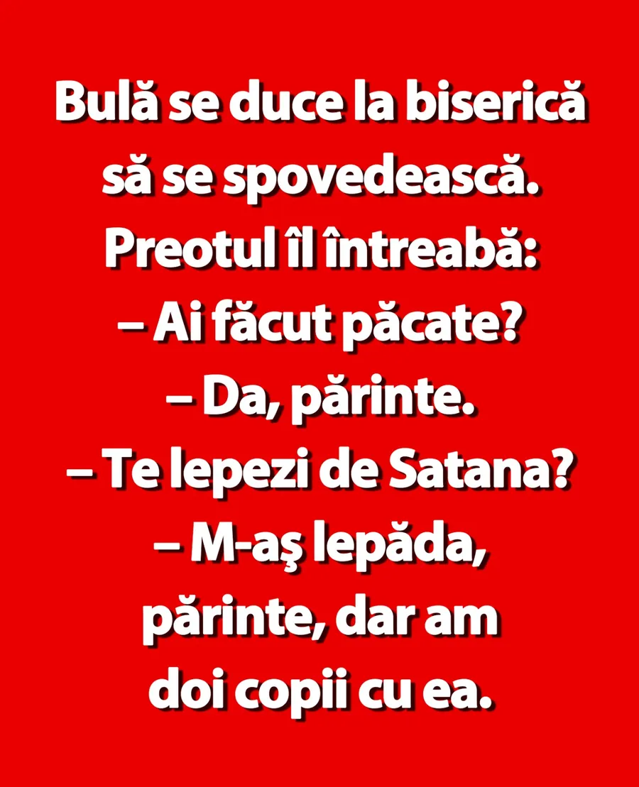 Bulă se duce la biserică să se spovedească. Preotul îl întreabă: