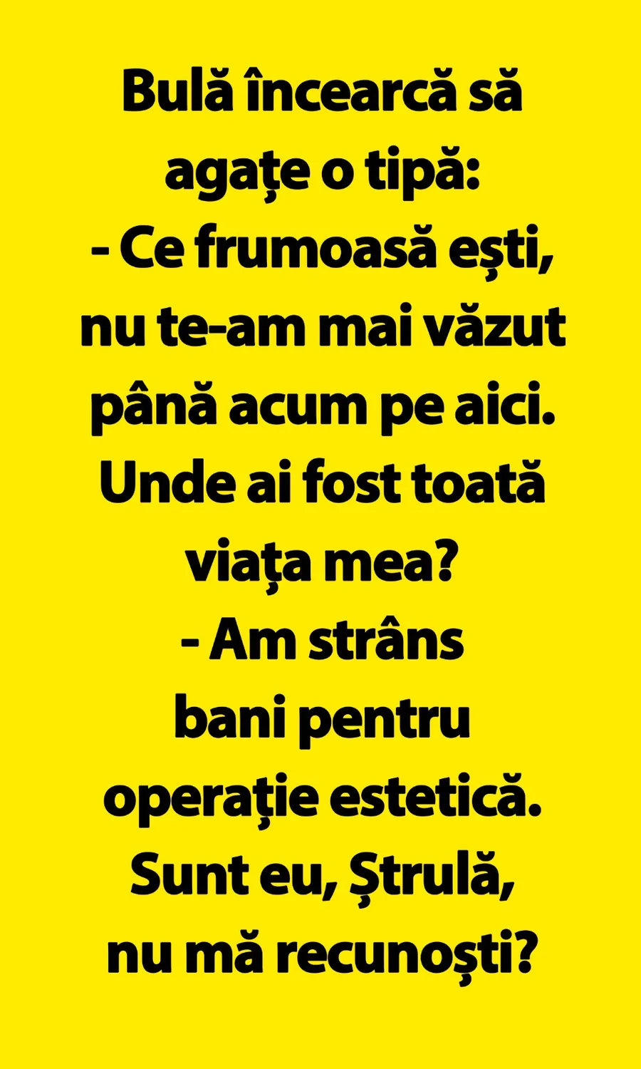 – Am strâns bani pentru operație estetică. Sunt eu, Ștrulă, nu mă recunoști?