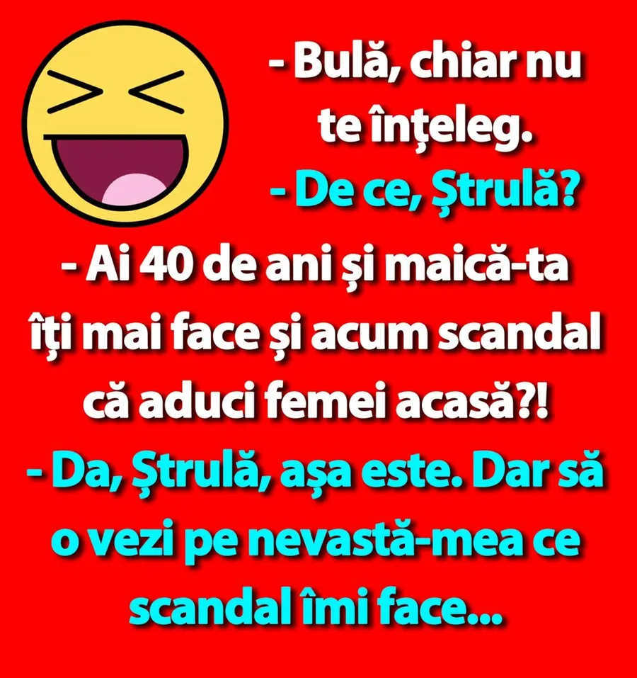 – Ai 40 de ani și maică-ta îți mai face și acum scandal că aduci femei acasă?!