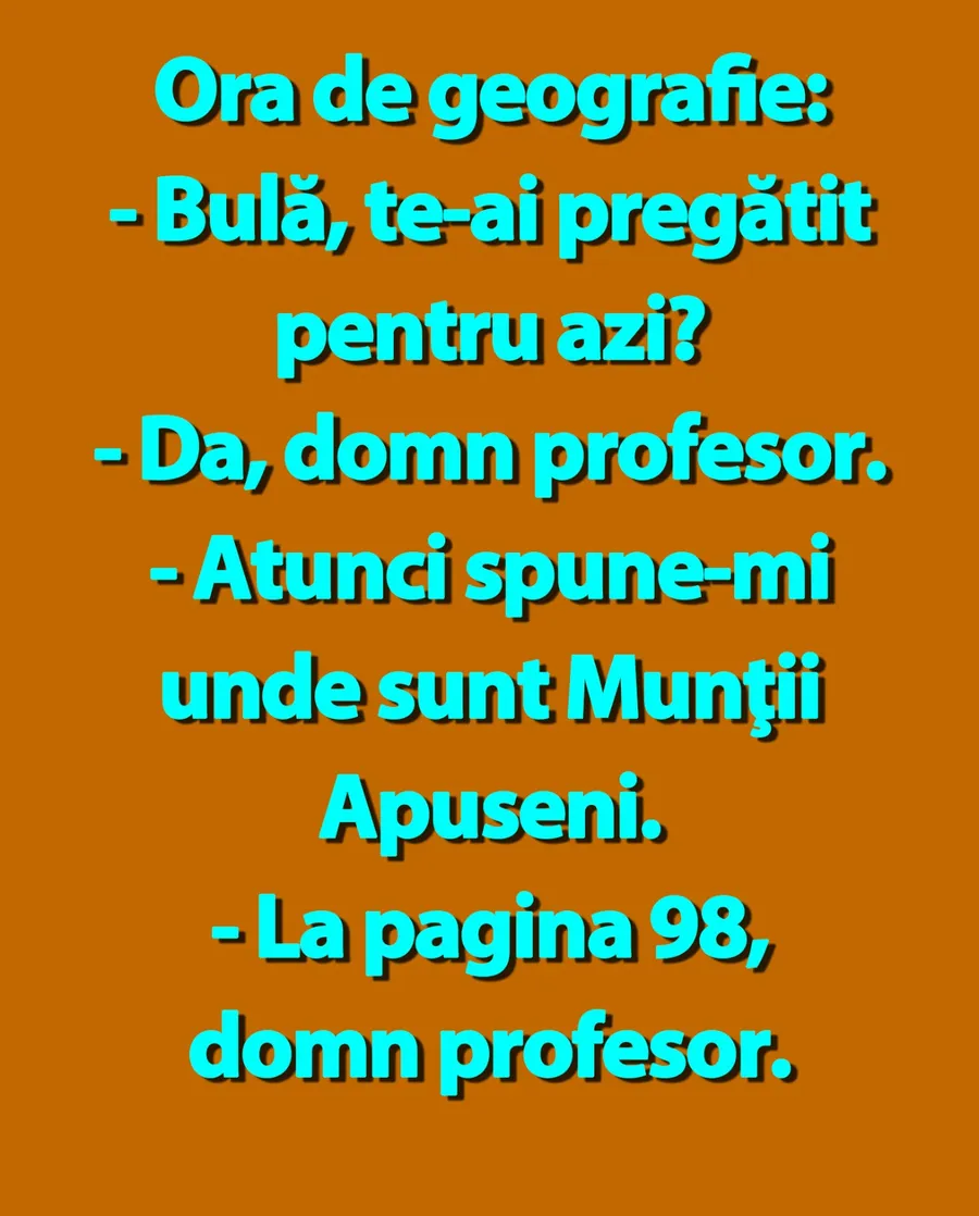 – Atunci spune-mi unde sunt Munţii Apuseni.