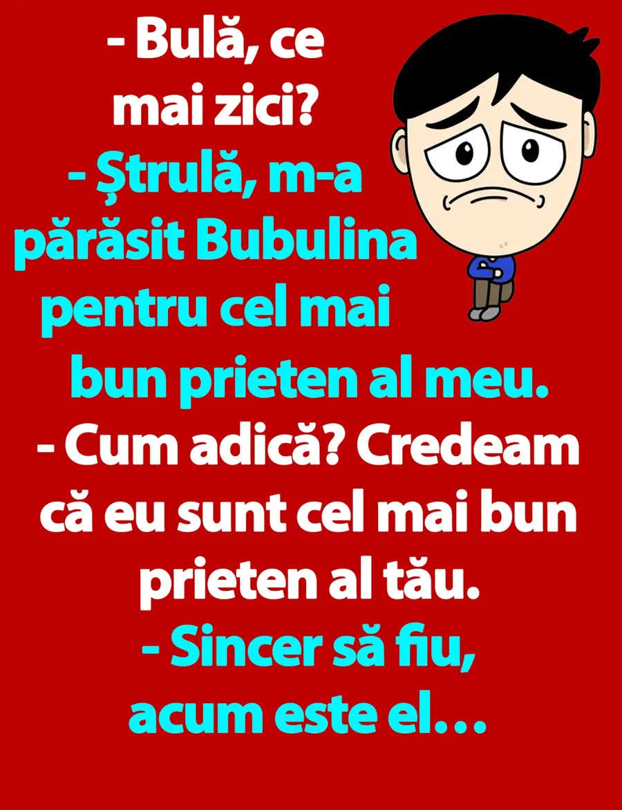 – Ștrulă, m-a părăsit Bubulina pentru cel mai bun prieten al meu.