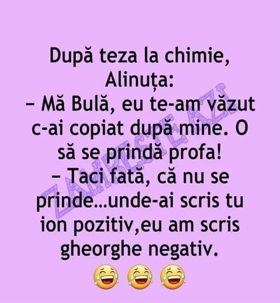 -Mă, Bulă, eu te-am văzut că ai copiat după mine. O să se prindă profa!