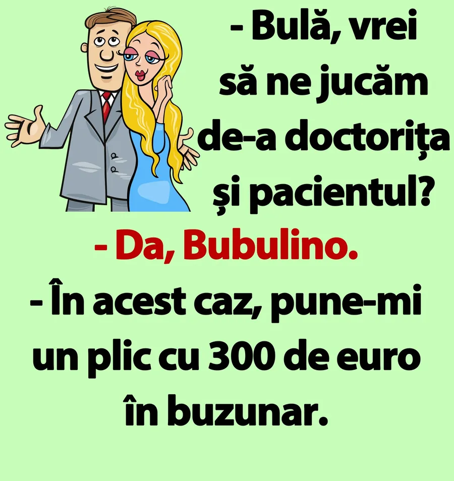 – Bulă, vrei să ne jucăm de-a doctorița și pacientul?