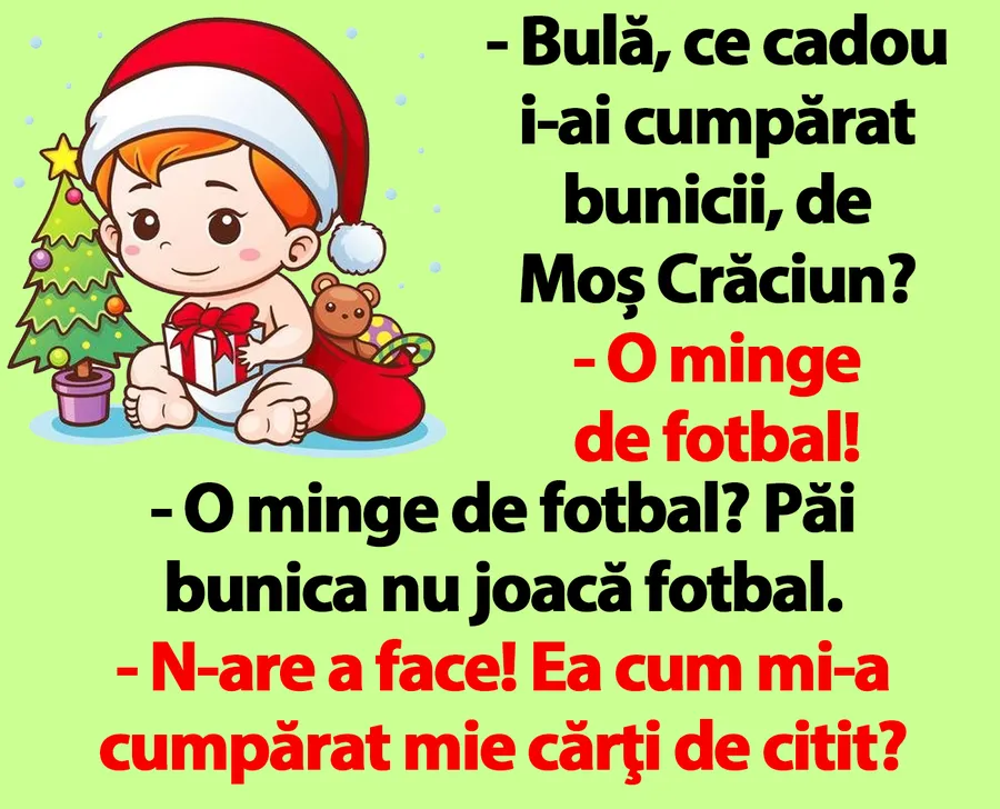 – Bulă, ce cadou i-ai cumpărat bunicii, de Moș Crăciun?