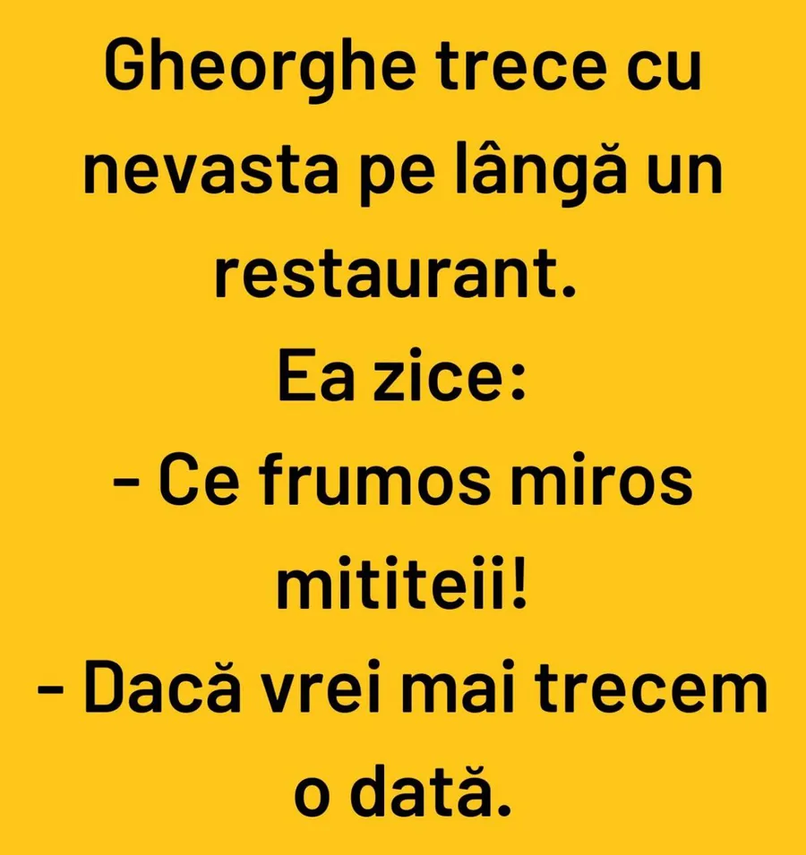 ”Gheorghe trece cu nevasta pe lângă un restaurant. Ea zice: